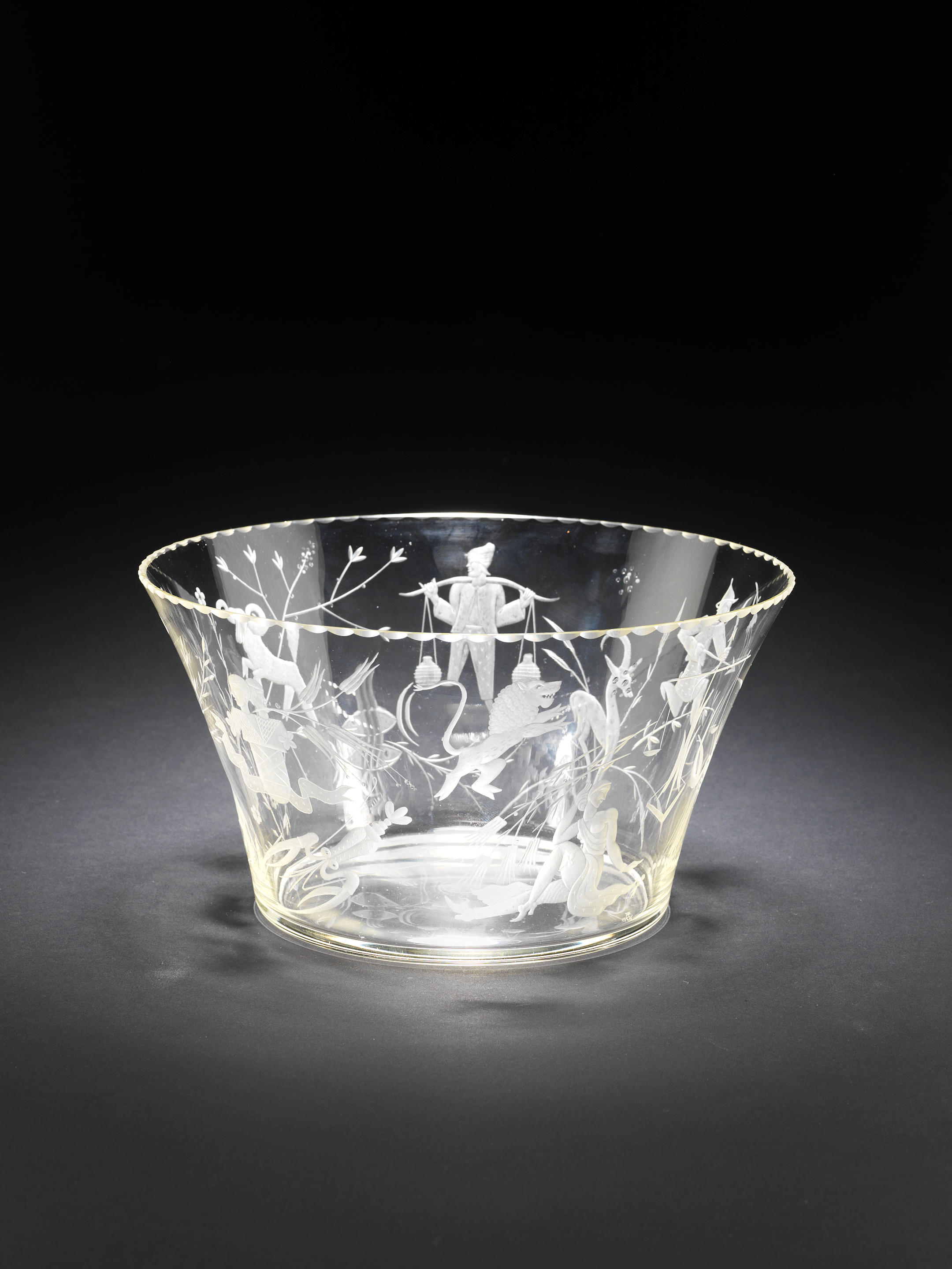 Bonhams An engraved clear glass bowl by Emil Kromer, 'Zodiac Bowl', 1936